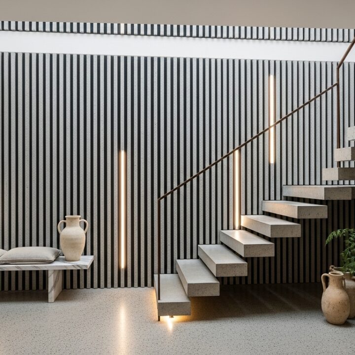 Discover a new era in surface design with the SlatStone Felt Panel System — where the raw elegance of natural lava stone meets sustainable, high-performance engineering. Each panel features finely honed volcanic stone slats seamlessly bonded to a flexible recycled PET felt backing. Lightweight and versatile, SlatStone installs easily on drywall, concrete, wood, and even curved columns — offering bold texture, acoustic comfort, and total architectural freedom.