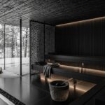 Dark cosmic black with mineral speckles. A bold yet refined surface perfect for high-contrast, dramatic interiors.