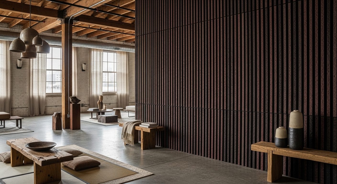 Mounted on acoustic felt and finished in a matte honed texture, Slatstone panels deliver not just aesthetic honesty, but also tactile comfort and acoustic softness — aligning perfectly with Wabi-Sabi’s emotional depth.
